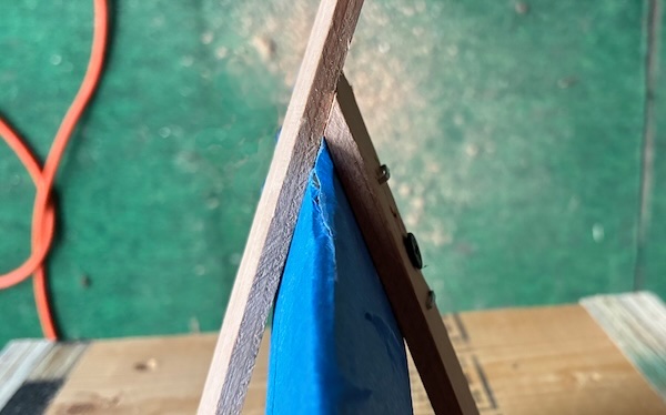 This is how the strips come together at the ends. The left strip will be glued to the right one then eventually trimmed off flush at the point.