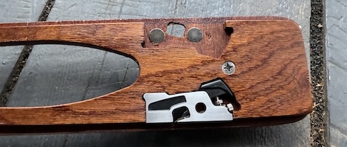 I also obtained this Robo-Bevel tool from Guillemot Kayaks. It magnetically holds a Veritas Mini Shoulder Plane and assists with creating the rolling bevel required for a smooth joint between the square-edged strips.