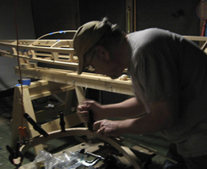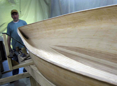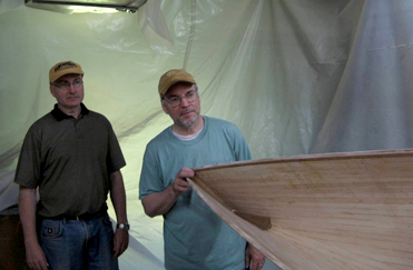 The friend with the table saw offered to help again. Here we are in his shop admiring his wood strip canoe project.