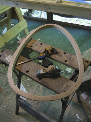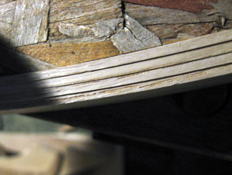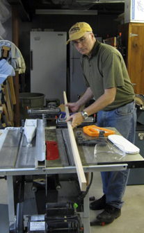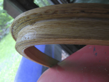 We cut 2 oak boards down to six strips, 1-1/4" x 3/32" x 8' for the coaming, and six strips, 3/8" x 3/32" x 8' for the lip.