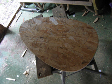To start a laminated coaming, I cut this center form from 1" press board (dimensions are provided with the Sea Tour offsets).