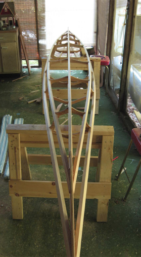 I extended both beyond the natural meeting point of the stringers, increasing the overall kayak length to 16 feet.