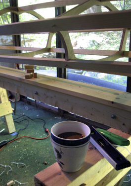 The remainder of the deck stringers are in place (looks like I'll have to raise the nearest one a little).