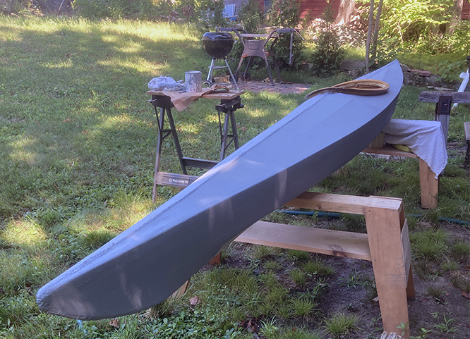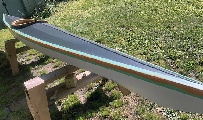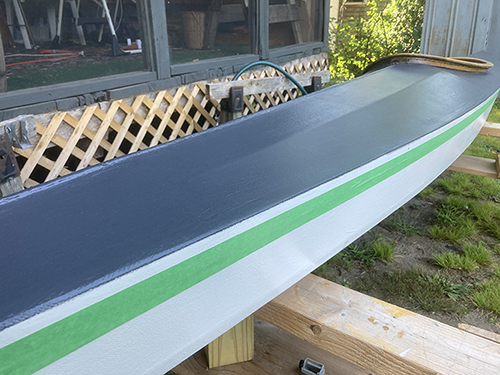 Then used more oil-based Rustoleum to paint the hull white and the deck dark gray with light sanding between coats.