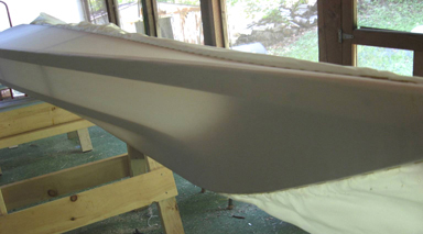 Following the videos on their site, I spread the cloth over the hull of the frame and sewed a "sock" at each end.